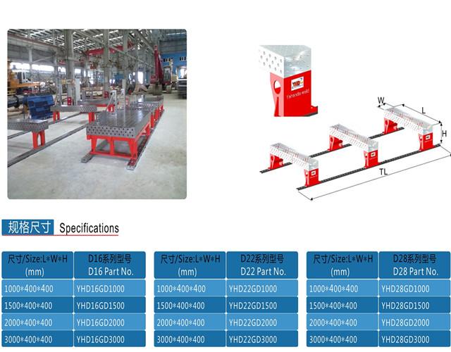 D28/D16 三維柔性軌道式平臺(tái)用于較大或 型的鋼結(jié)構(gòu)焊接裝夾,列如:高壓線塔、舞臺(tái)鋼結(jié)構(gòu)件、吊車鋼結(jié)構(gòu)力臂、挖掘機(jī)斗桿及動(dòng)臂、戶外鋼結(jié)構(gòu)廣告架等場合。